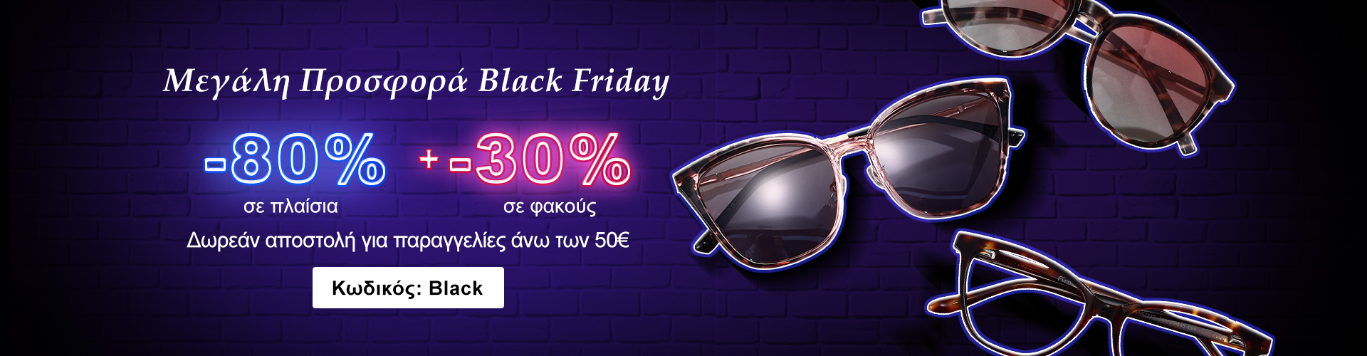 • Η έκπτωση στους φακούς όρασης, φωτός μπλε και φωτοχρωμικούς ισχύει μαζί με εκπτωμένους κορμούς γυαλιών.